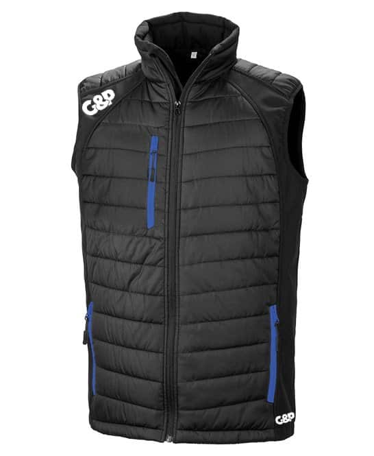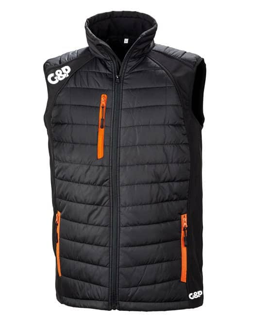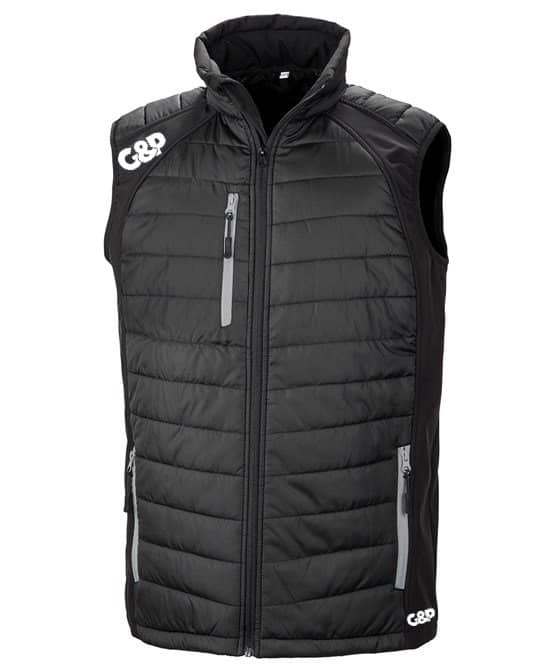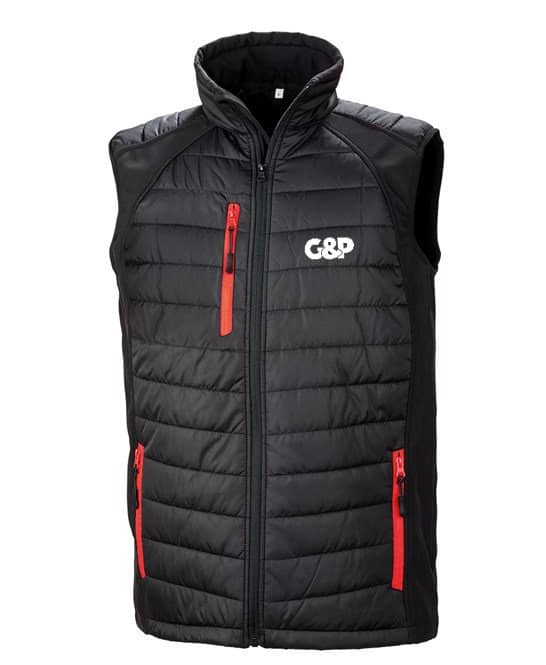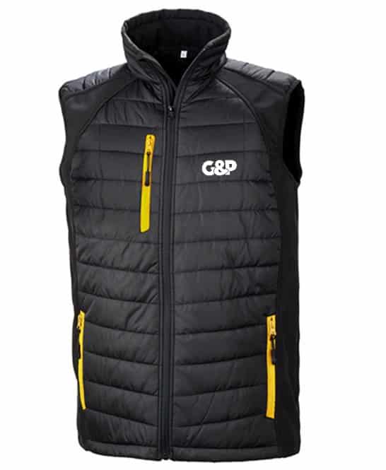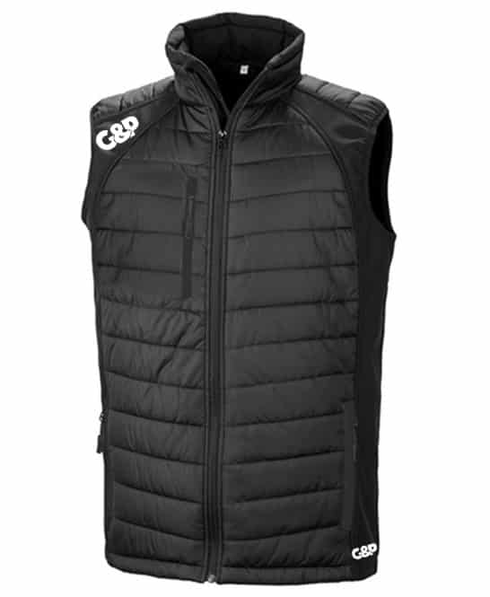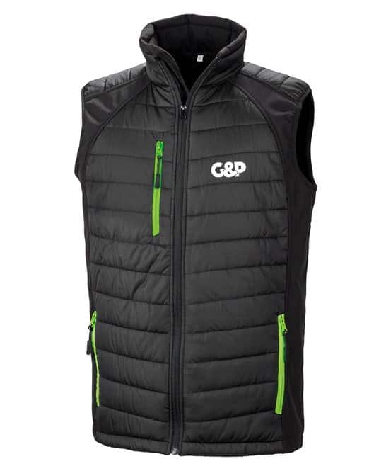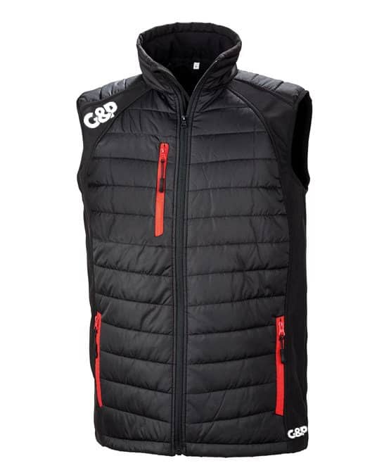 Stylish Trim available in a number of colour options. With a combination of padding plus softshell, this Gillet offers the perfect garment to keep you warm whist not impacting your performance on the course. It is wind and shower proof finished with our High Build G&P Logo.